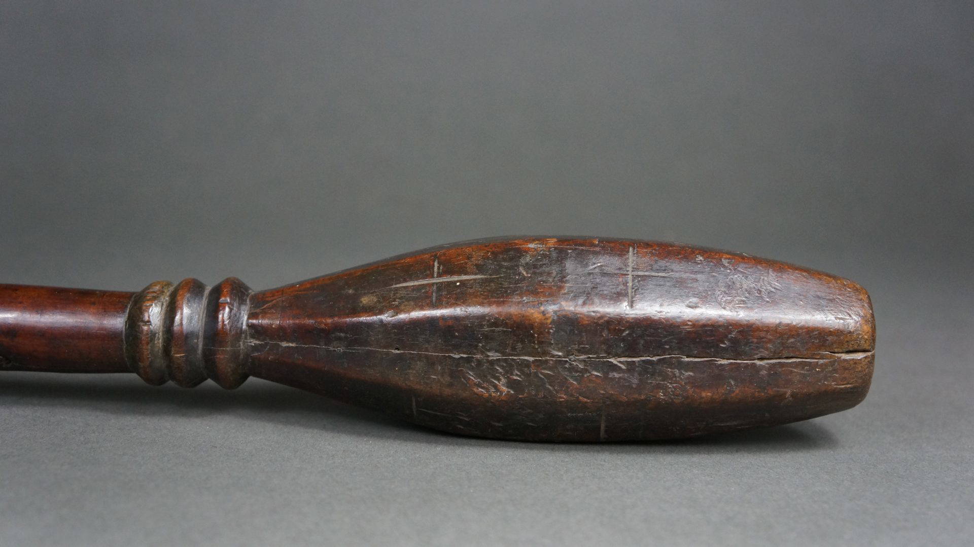 198. An old club with crucifixes engraved to the head.