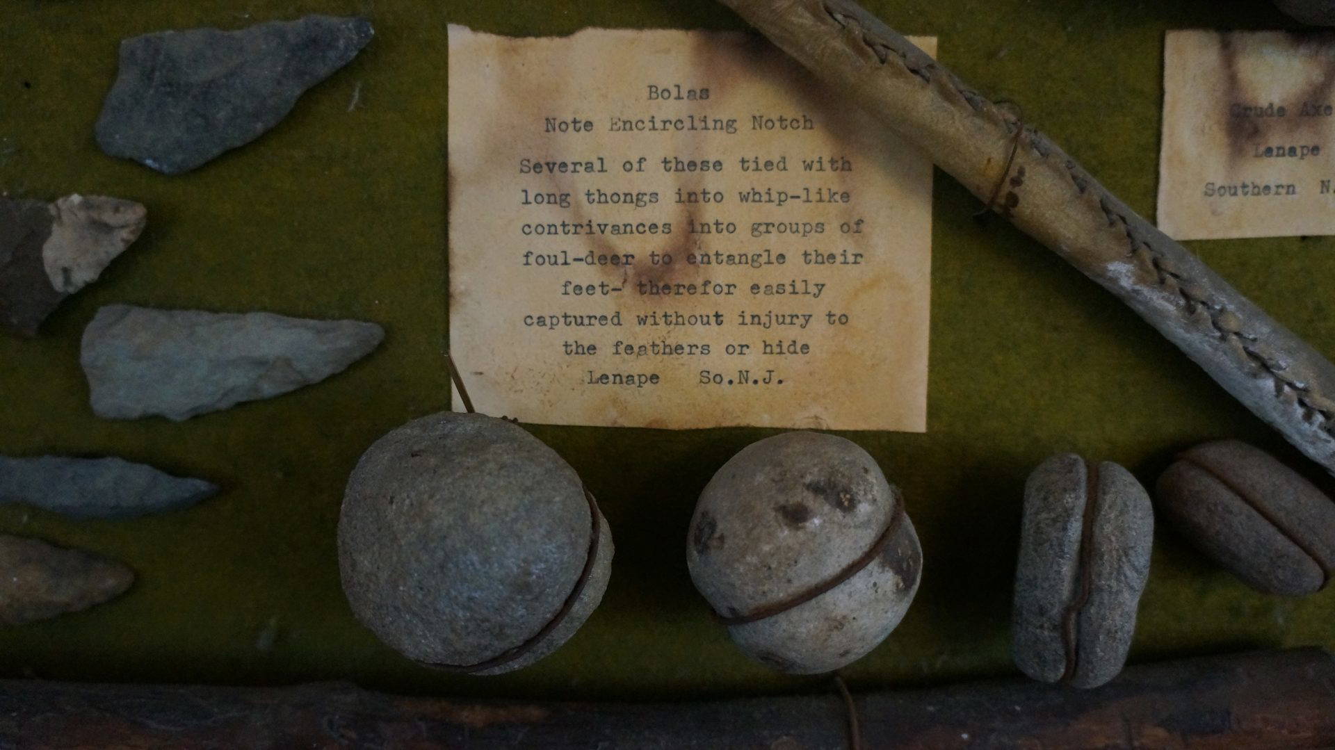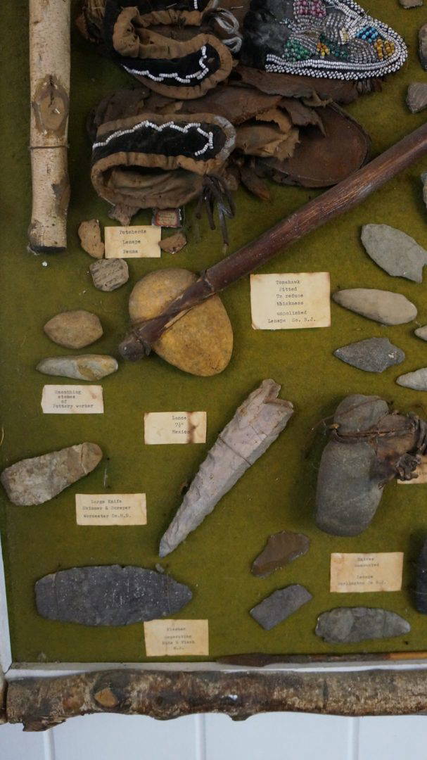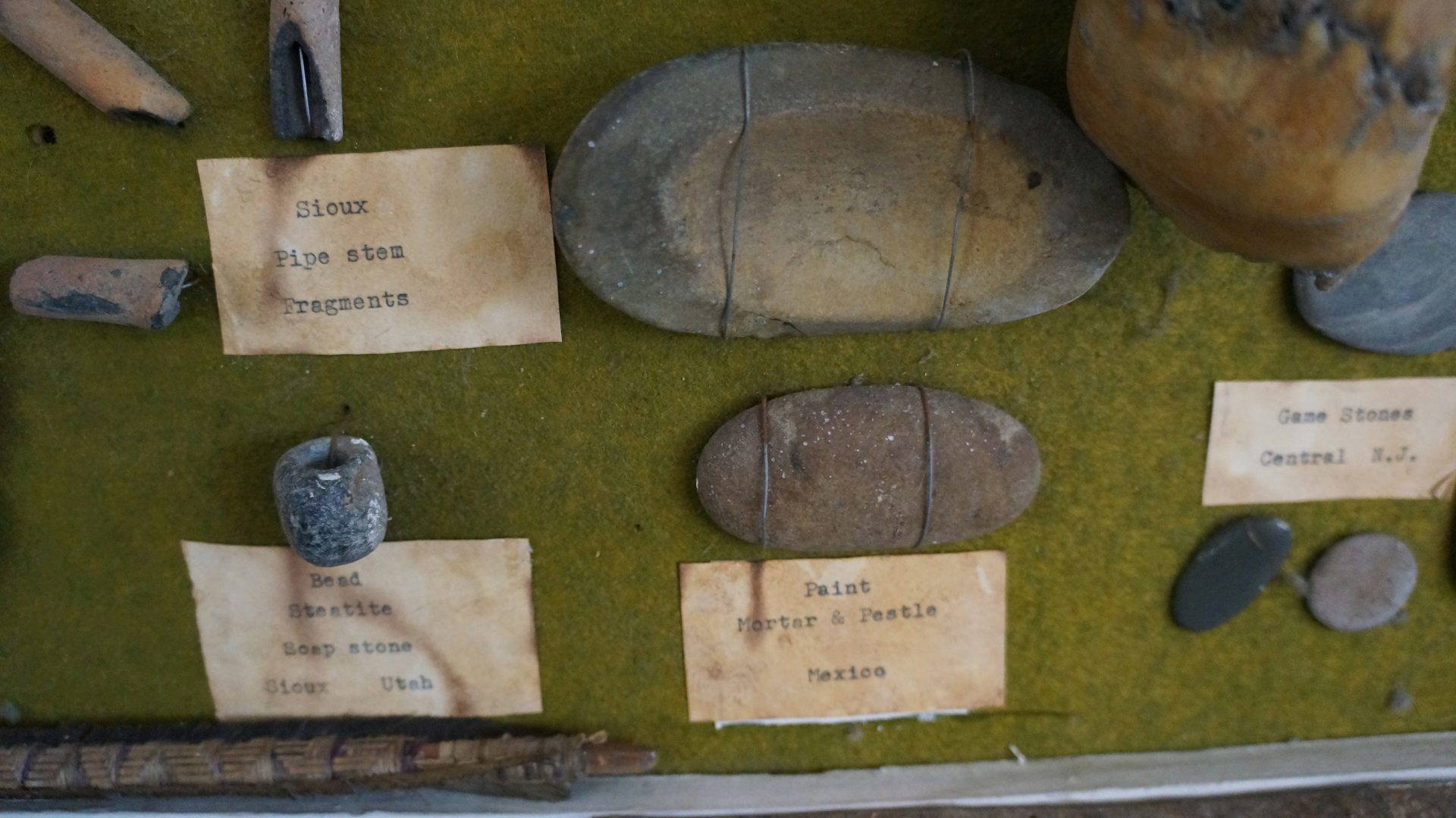 222. A collection of historic and prehistoric artefacts from the U.S.A. Purported to have been in a public schools private museum. Including ancient axe heads and arrow points, hafted axes, a lovely little pigment dish and grinder, etc. Whomever composed the descriptions must have had an extensive knowledge in lithic objects from America.