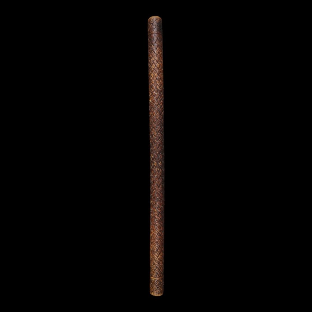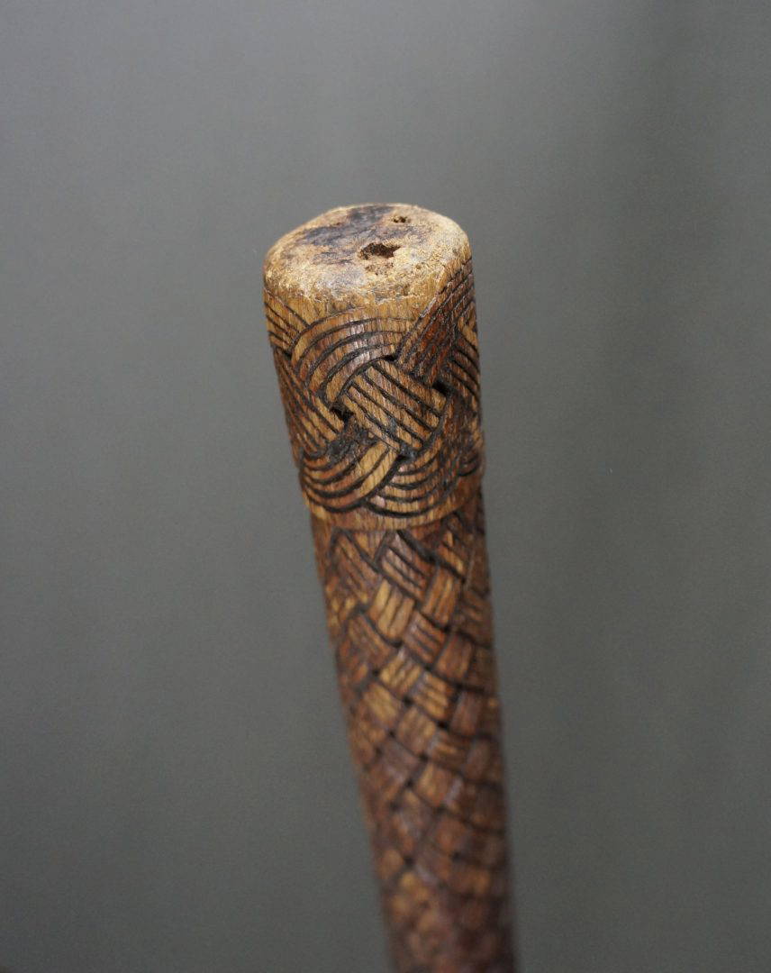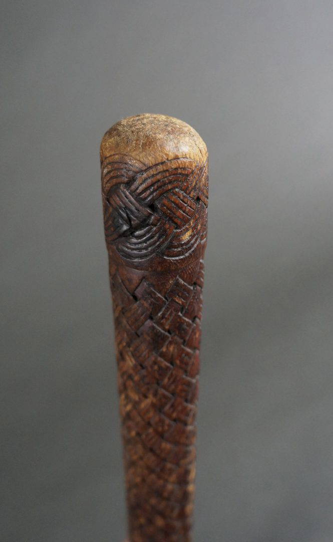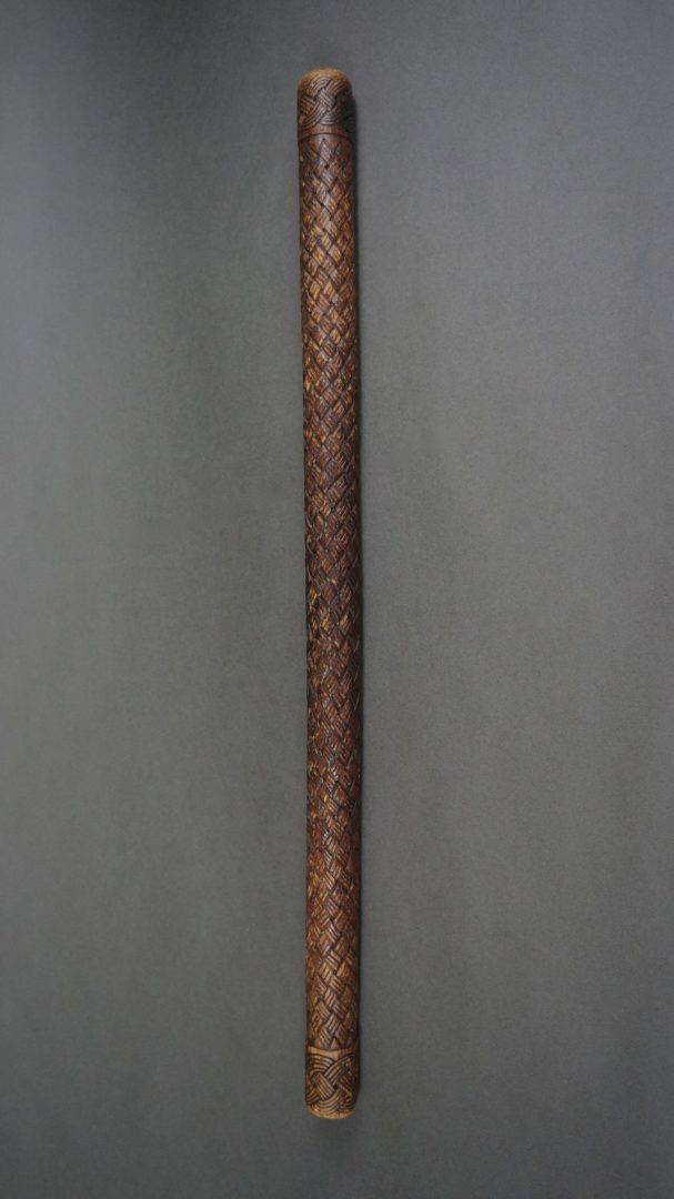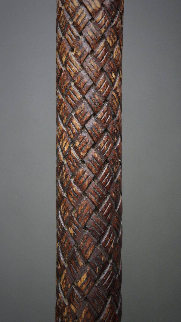 241. An interesting baton or sceptre, carved all over in a basketry design. Early 20th century. Maybe Benin?