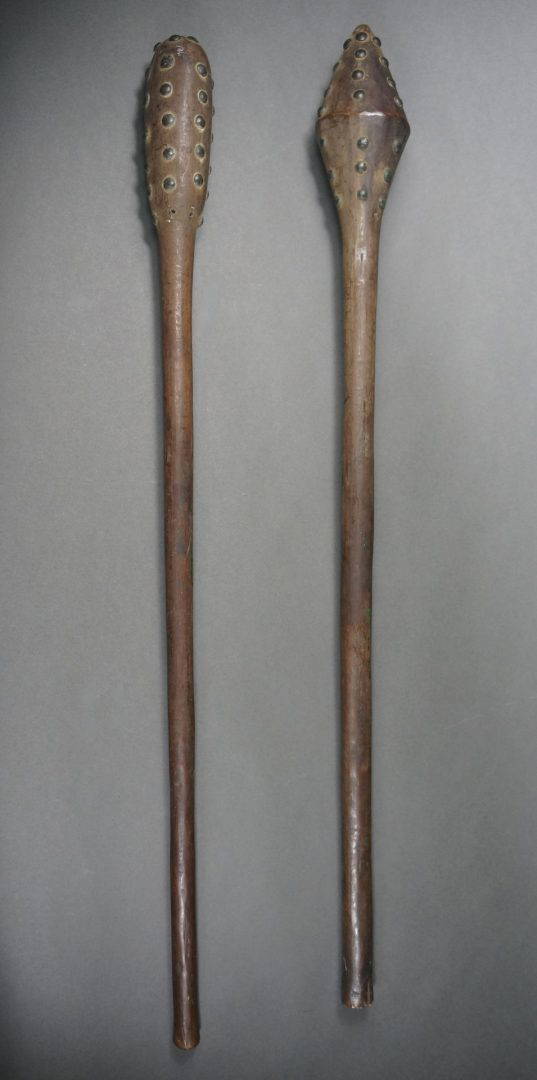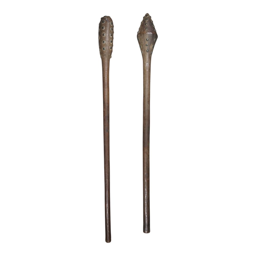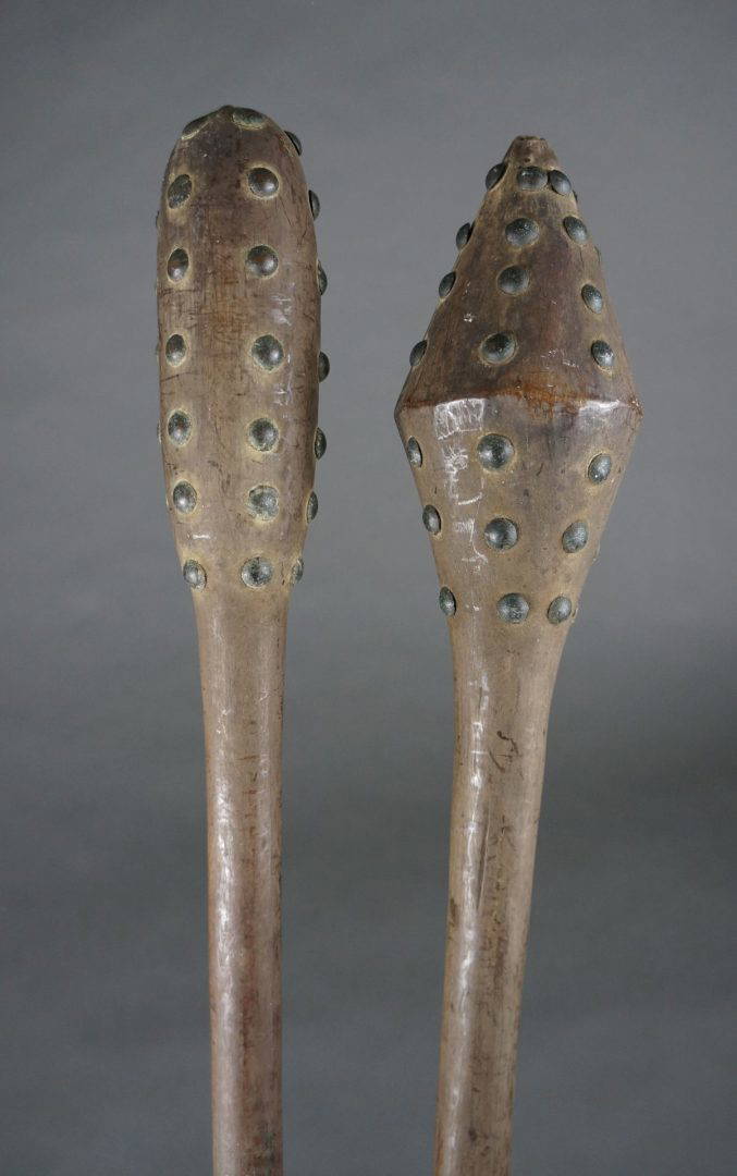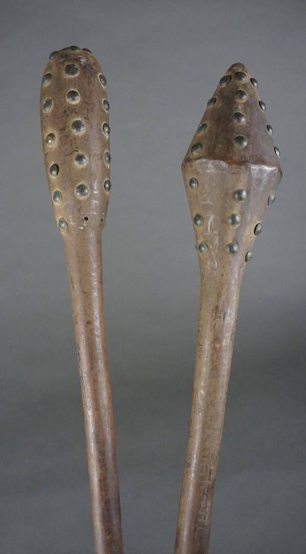 235. C1900, the heads decorated with European furniture tacks.