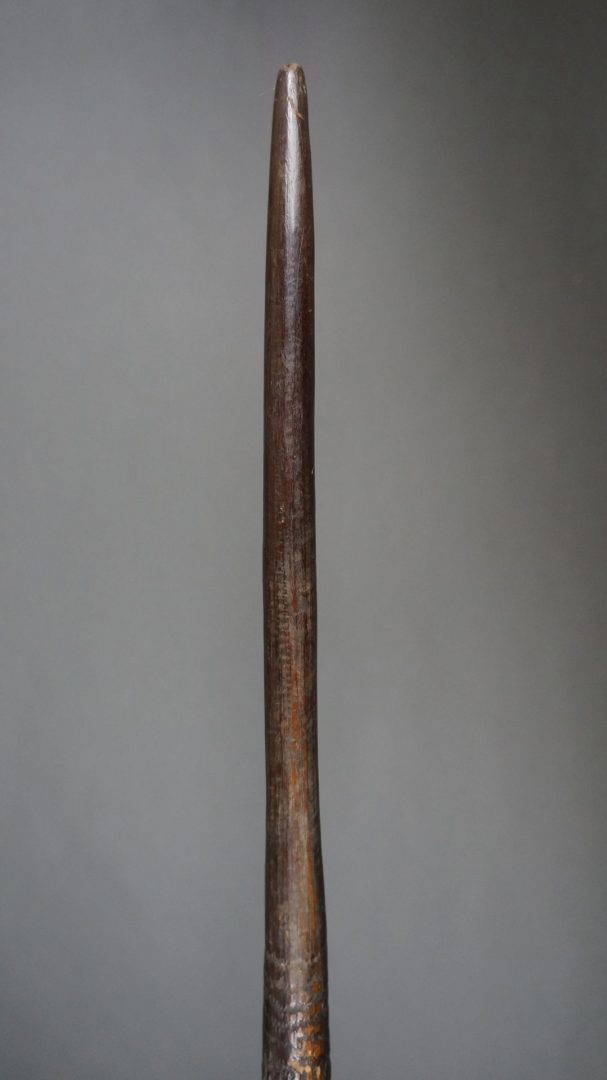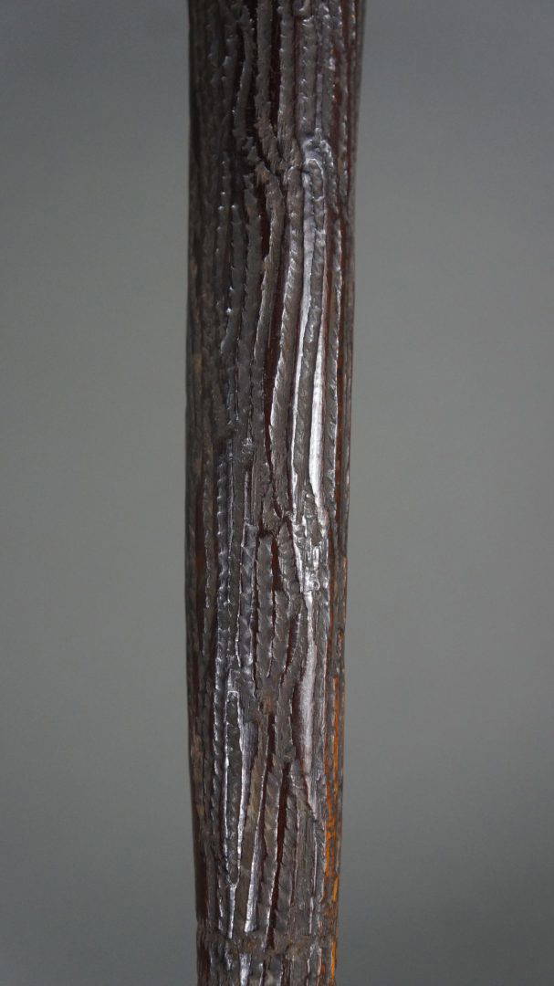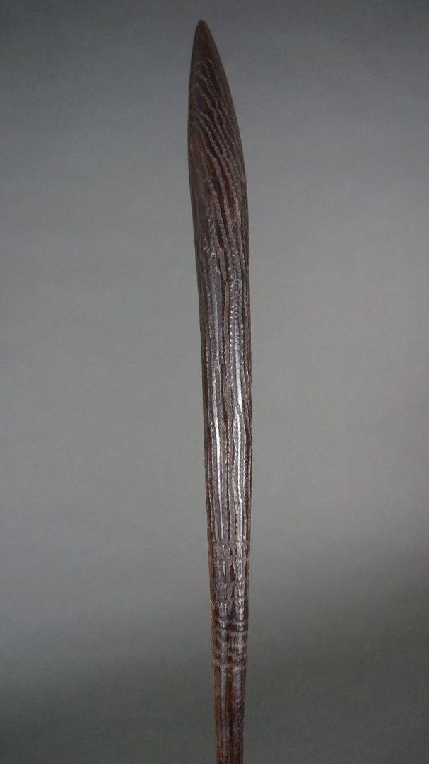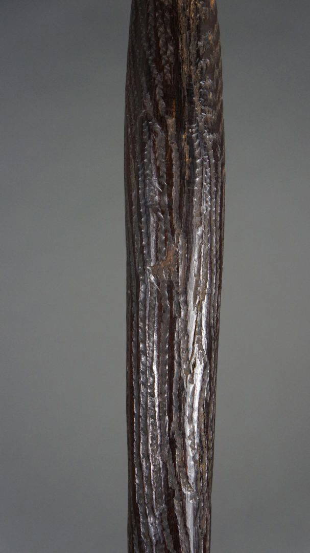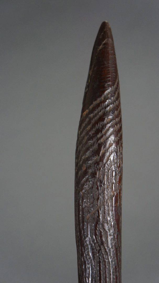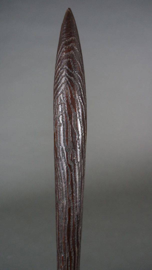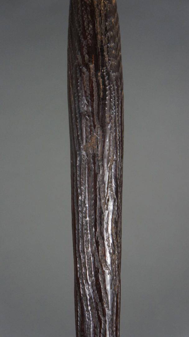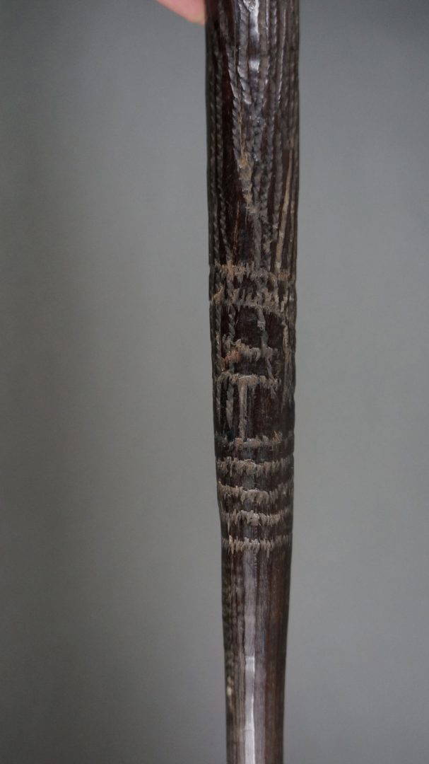 The tooling on this club is the same as found on early broad shields, suggesting that it was carved in N.S.W. Certainly in the 19th century.