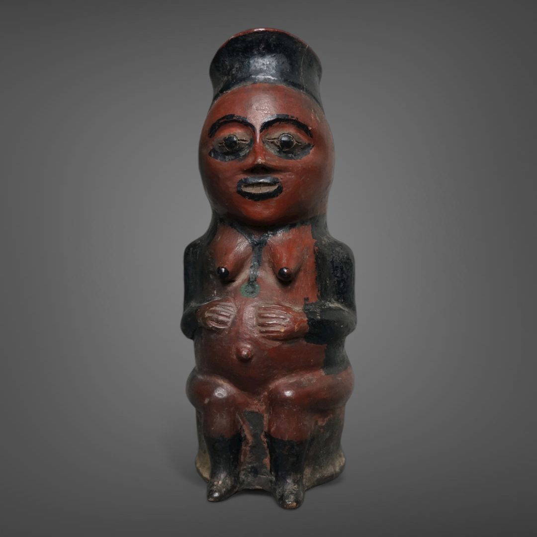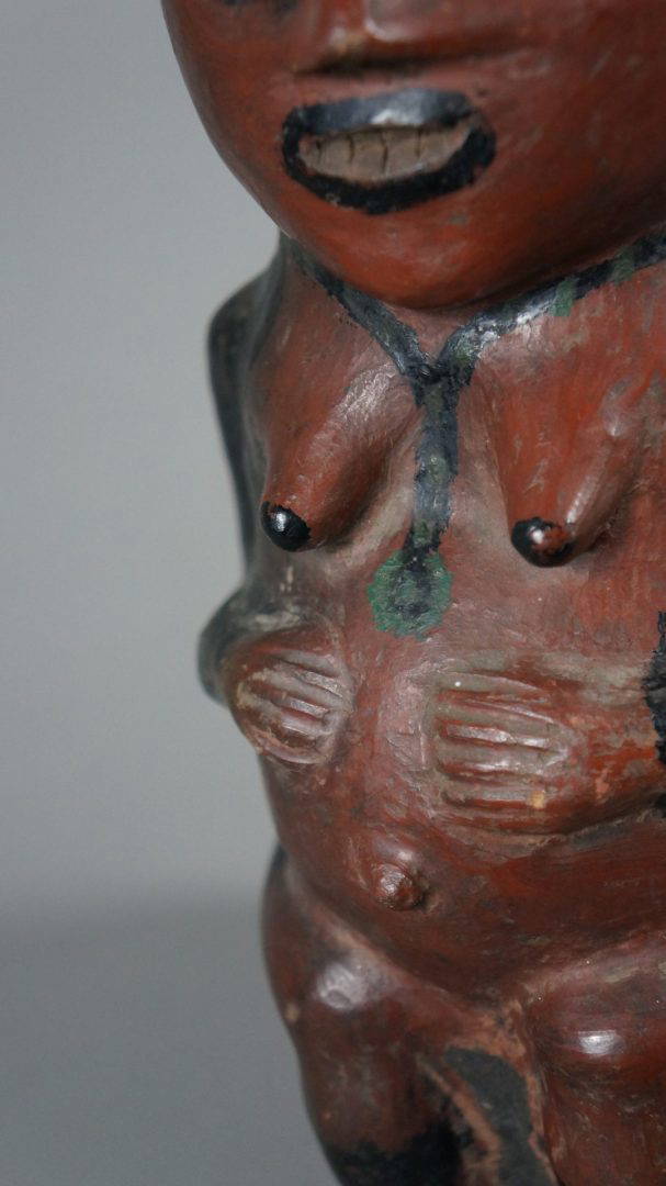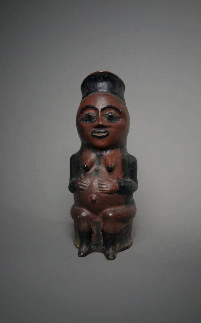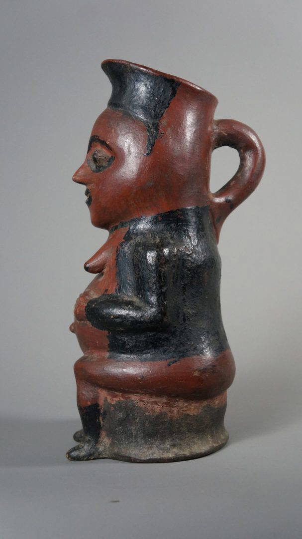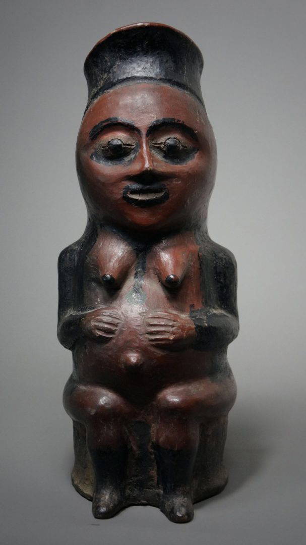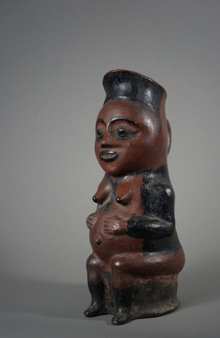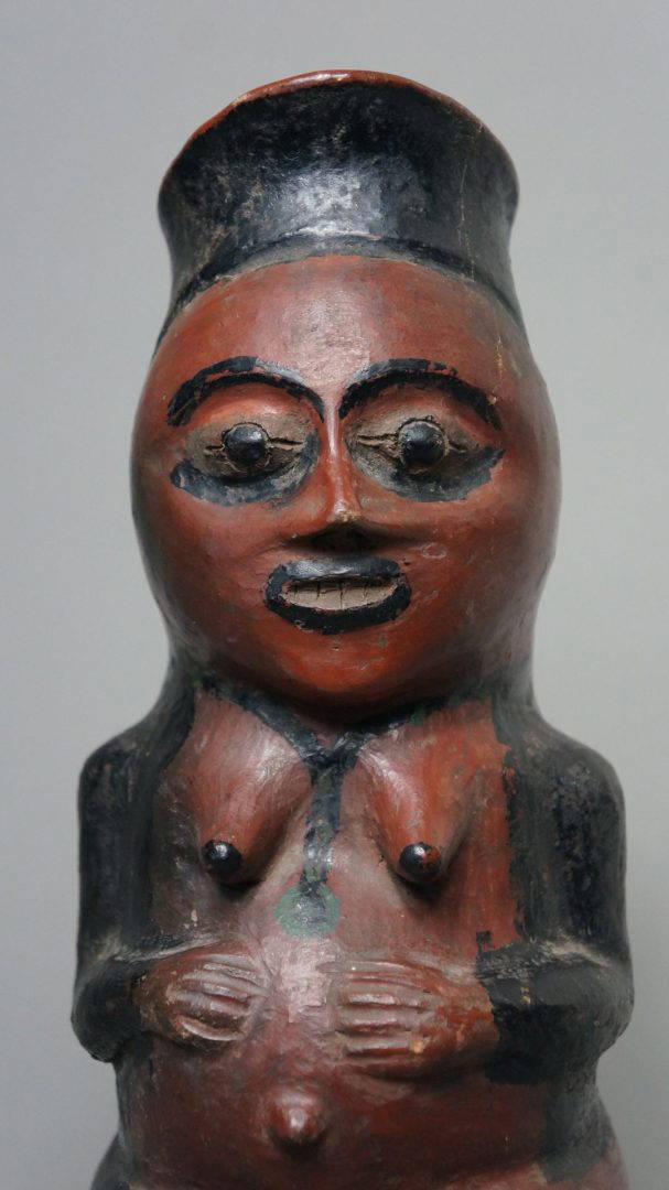130. A very rare pottery jug made in the Congo c1900 by the Yombe people. This jug appears to be heavily influenced by European ‘Toby” jugs. Toby jugs were first conceived in the 18th century in Staffordshire England. There is a crack to the side of the face.