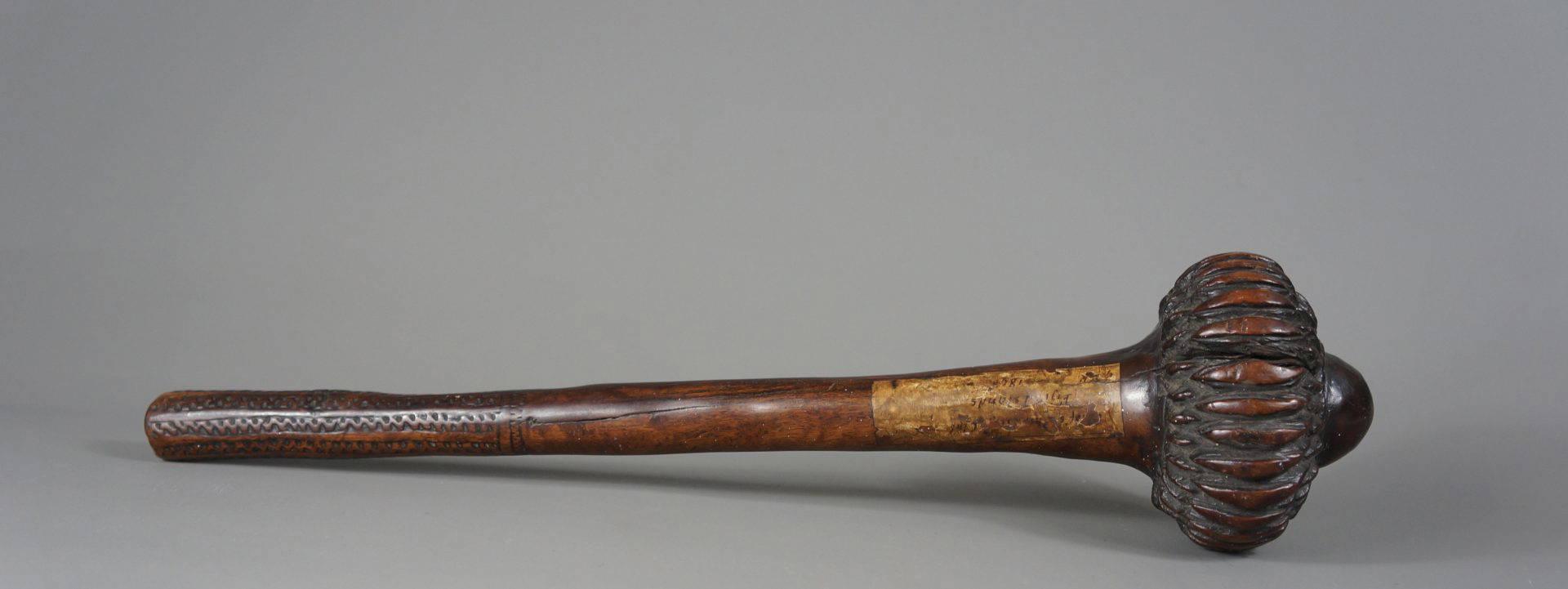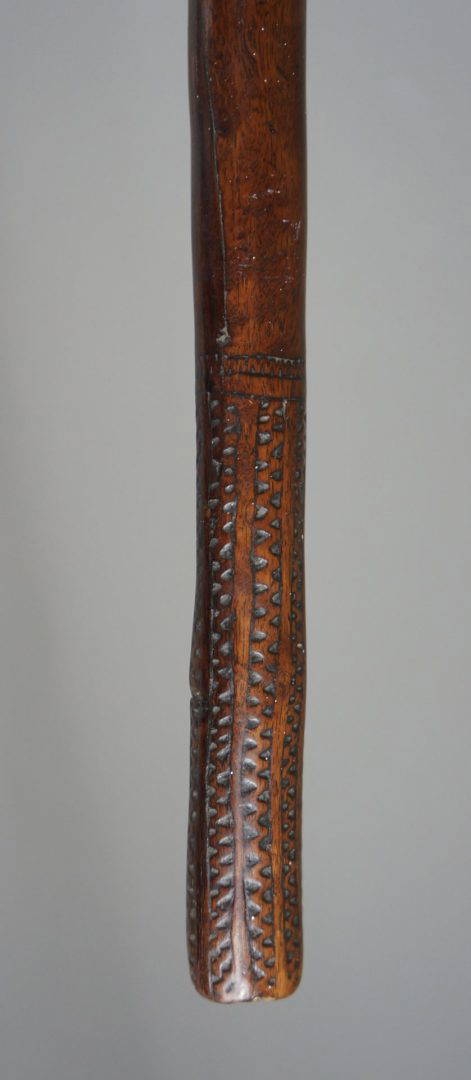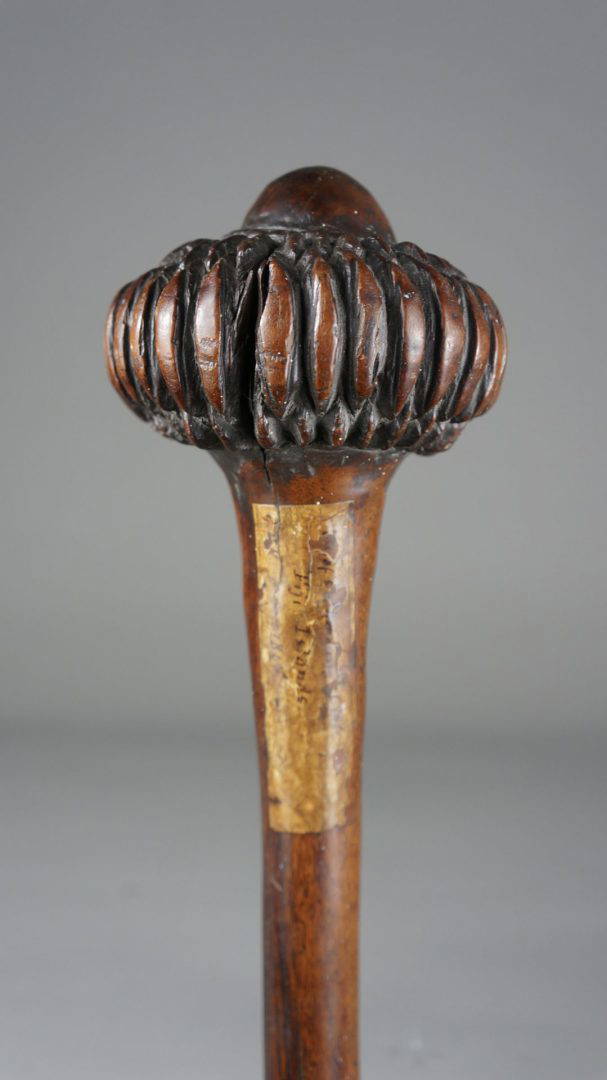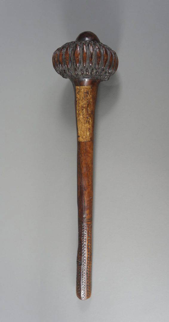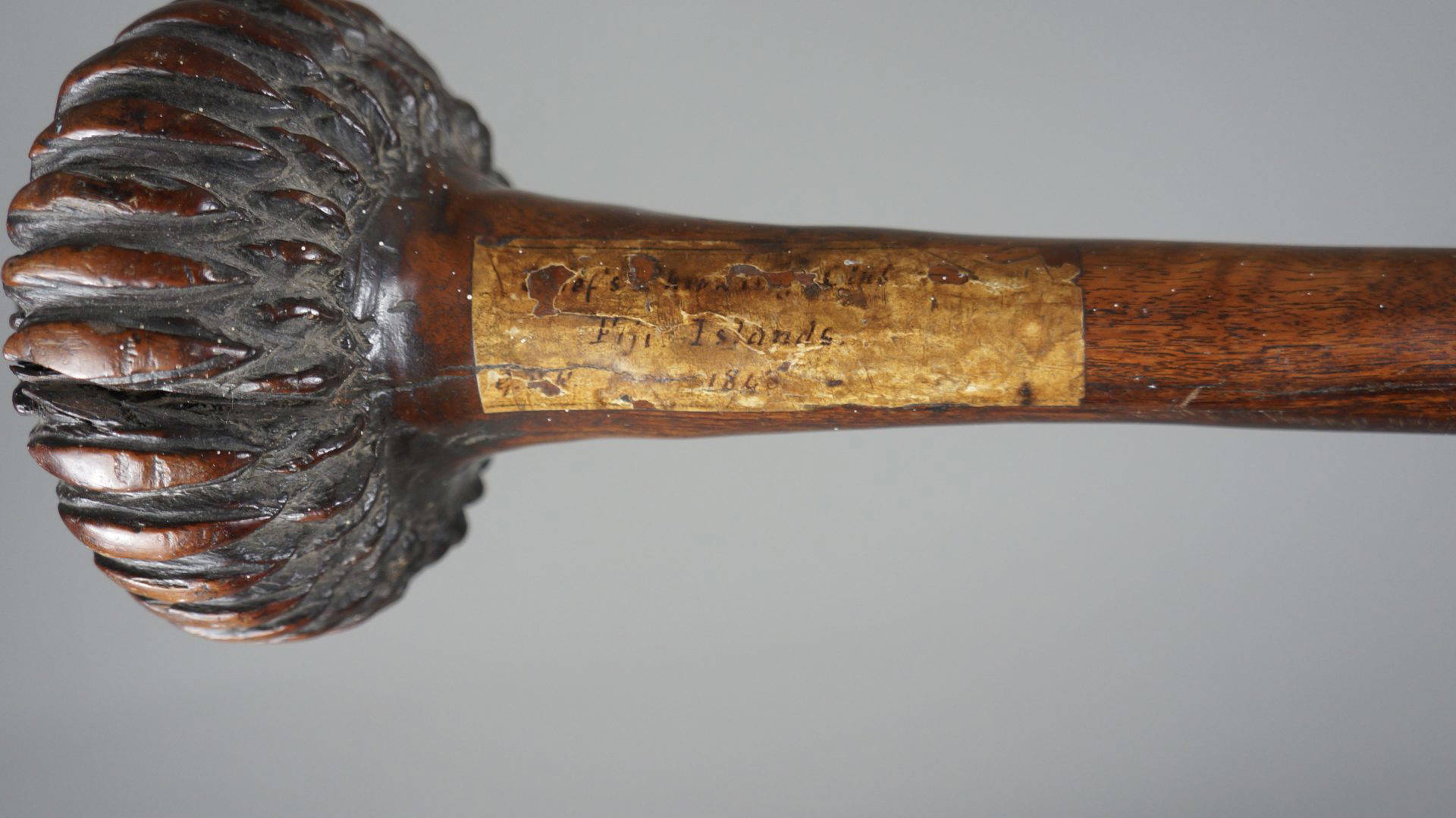 135. A very old Ula with an early date. The Label reads “Chiefs throwing club Fiji Islands G..K ? 1848” Crack to the head. Fantastic patina.