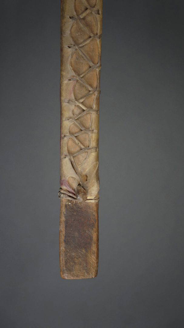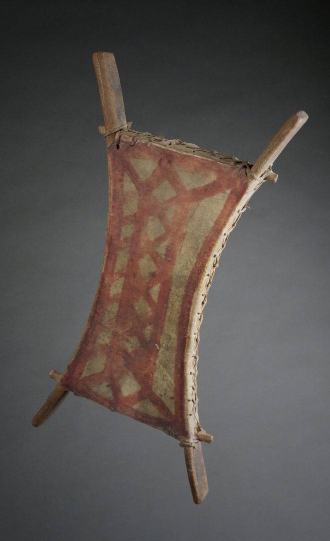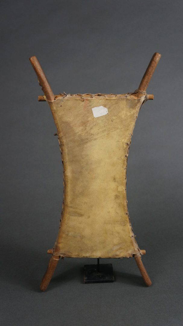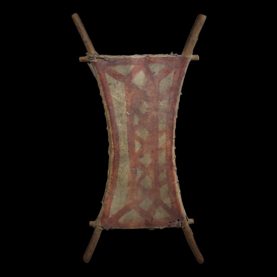 244. An interesting hand drum with a painted design.