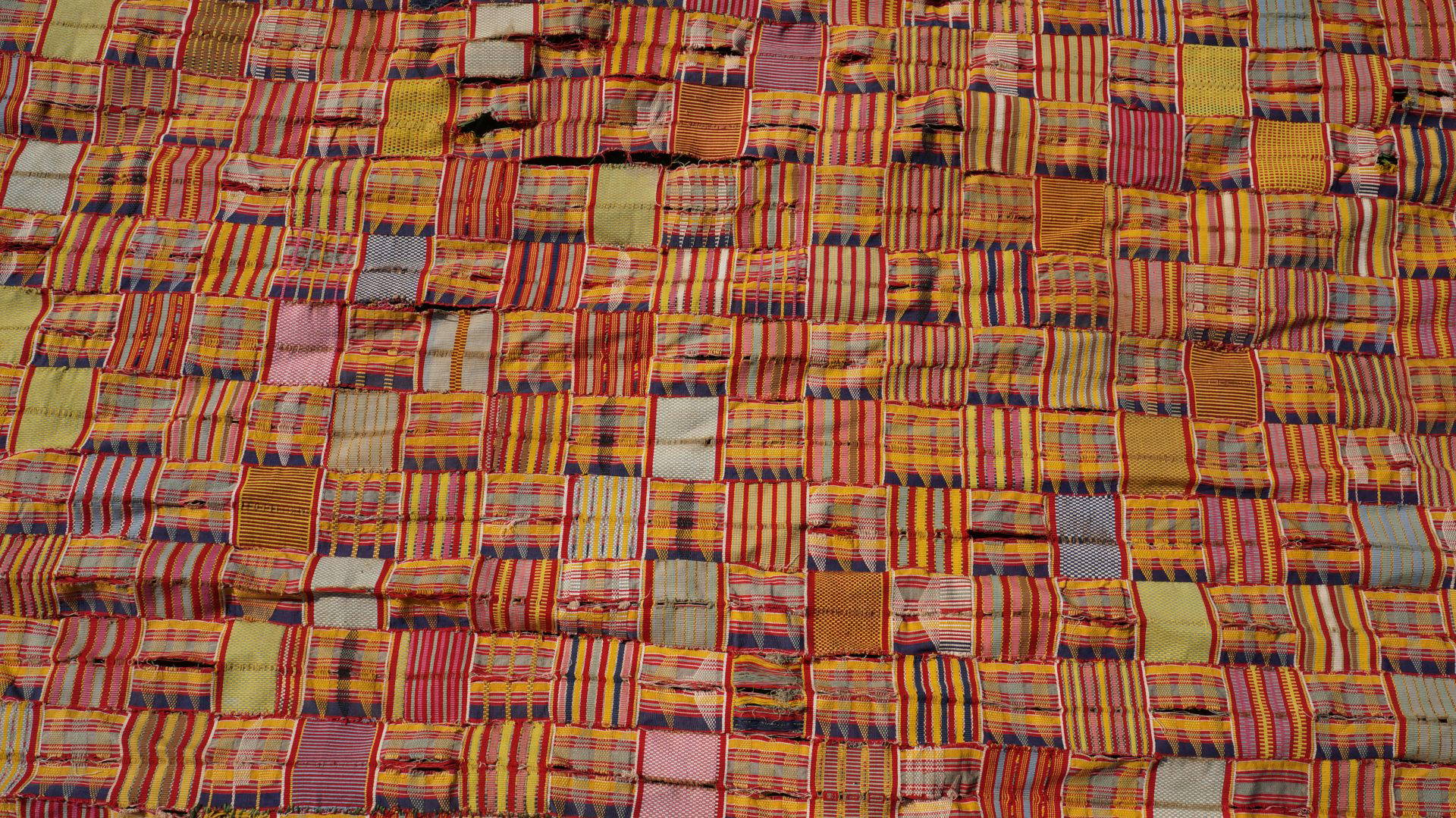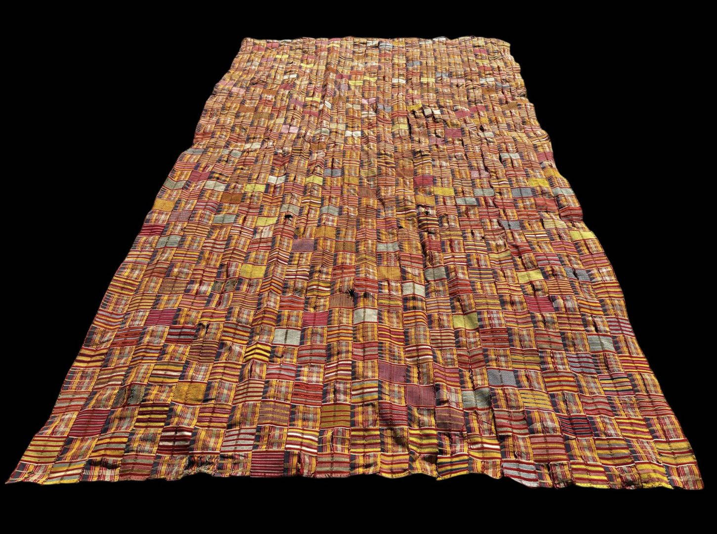24. A large and fine chiefs cloth dating to the early 20th century. Needs restoring but a beautiful textile as it is. Gold and yellow in the design indicate royalty.