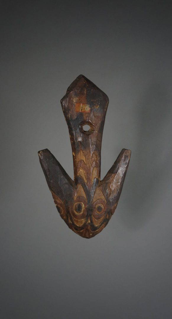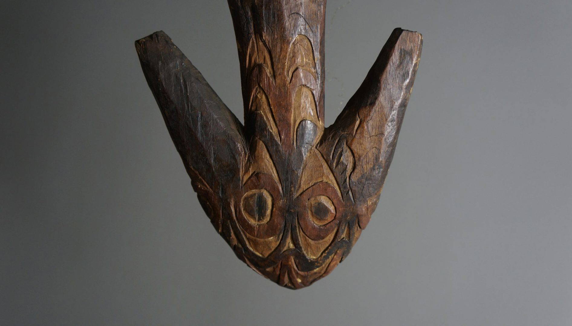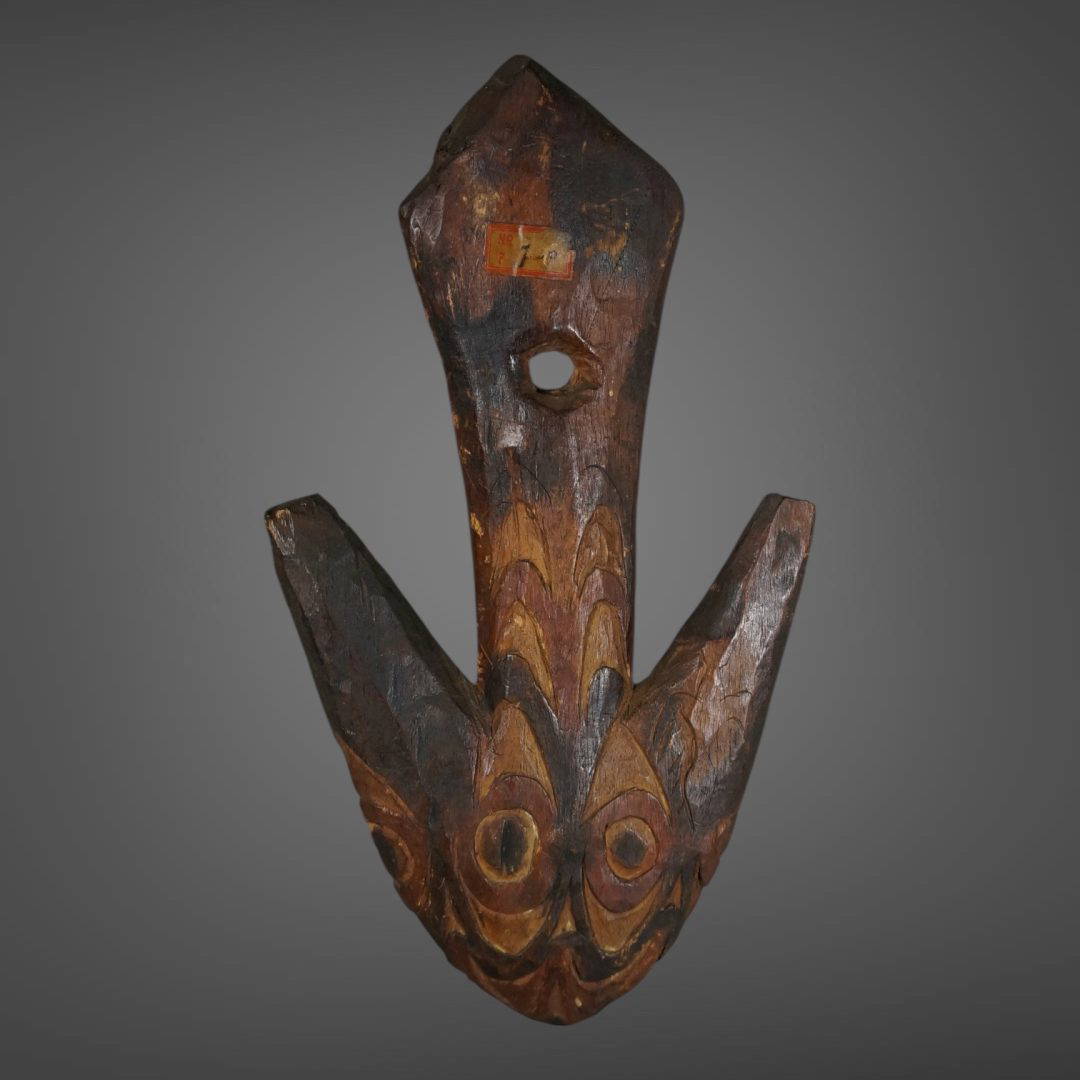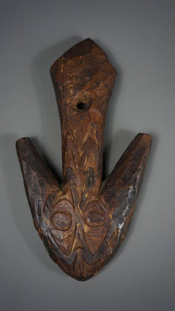 37. An extremely rare food hook from the Lake Sentani area. Decorated to both sides and probably stone carved.