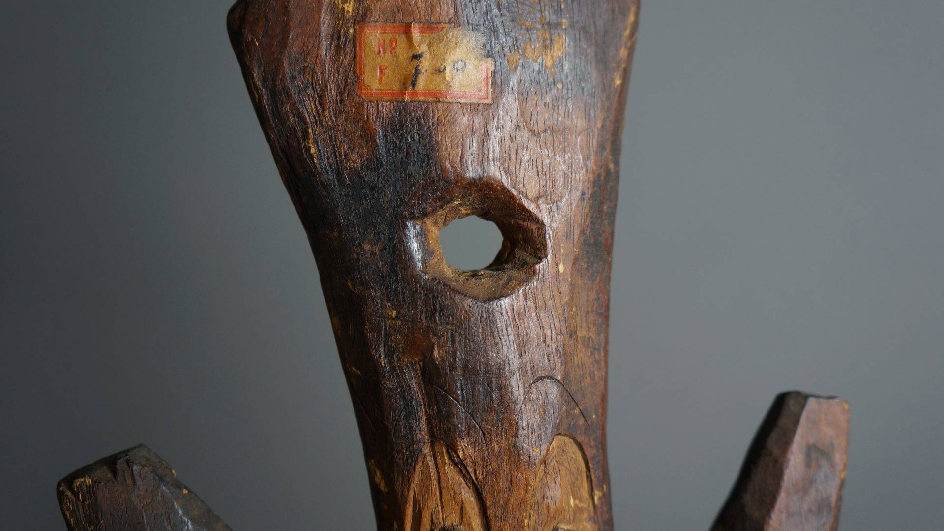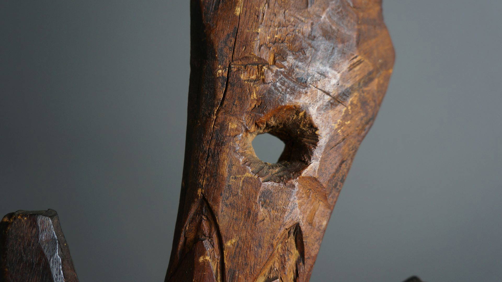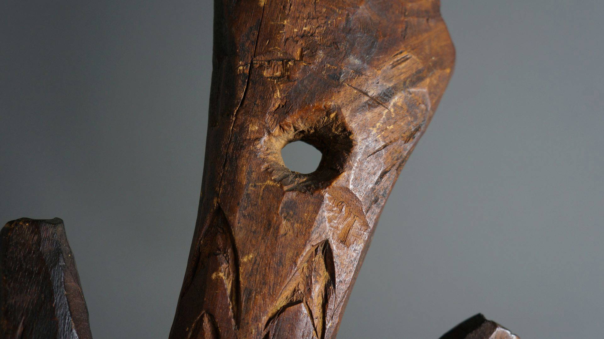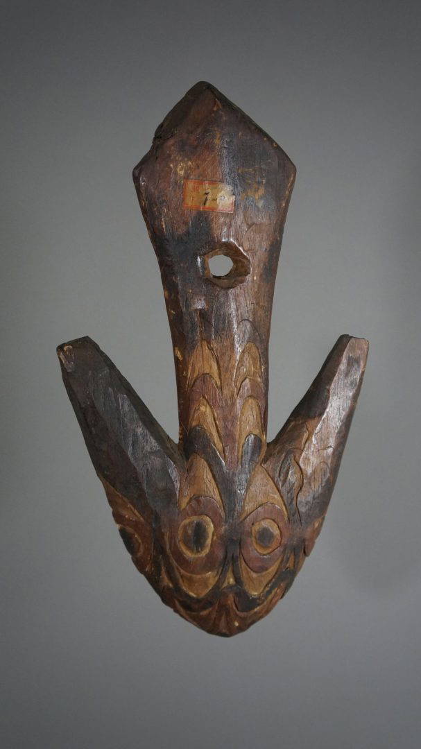 37. An extremely rare food hook from the Lake Sentani area. Decorated to both sides and probably stone carved.
