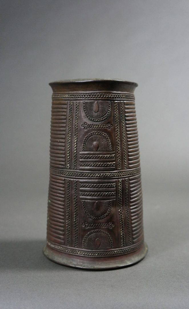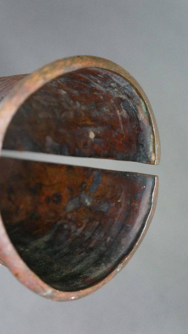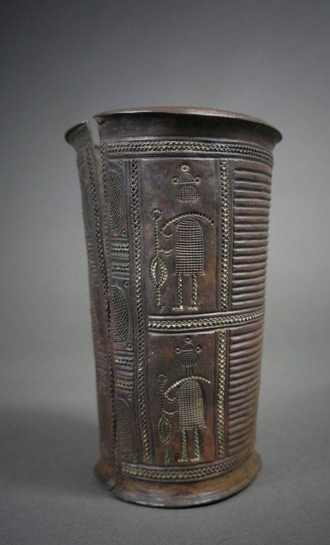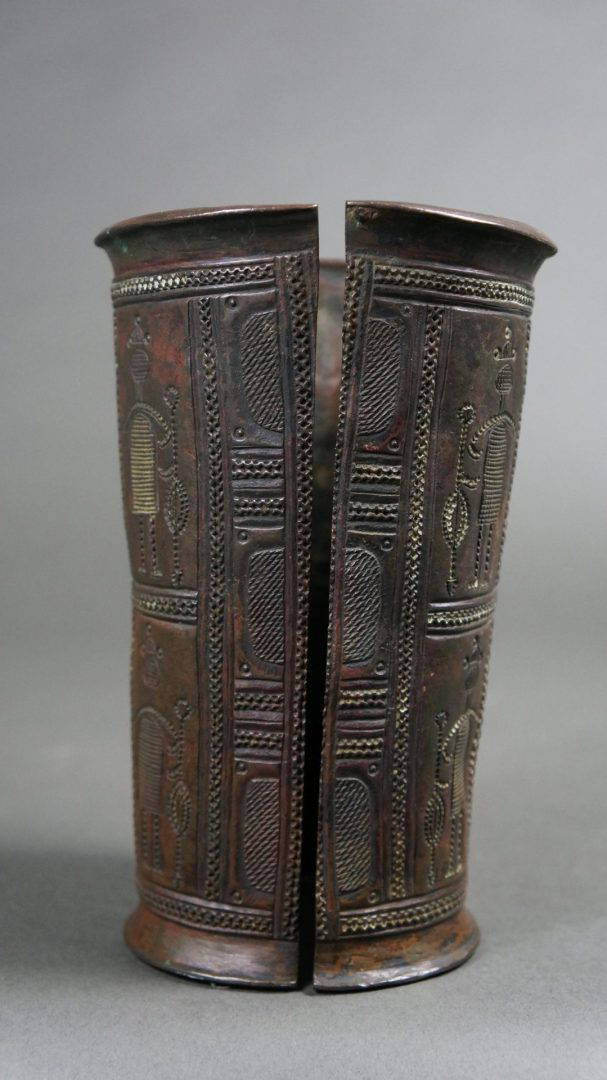 5. A lovely example of a cuff or armlet from the Igbo people of Nigeria. Note the figures holding traditional copper staffs. c1900.