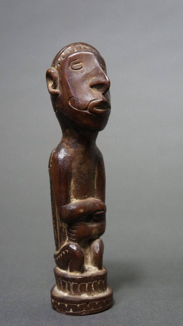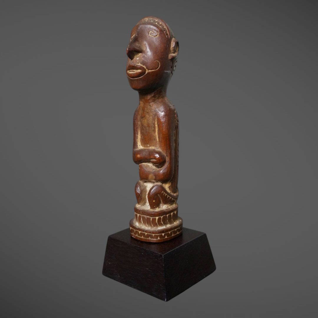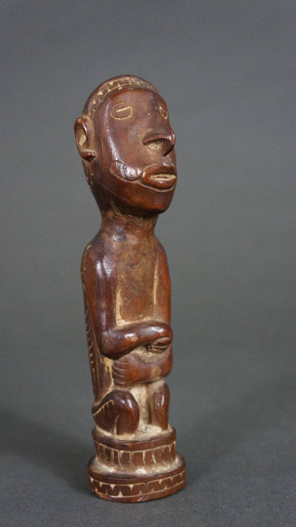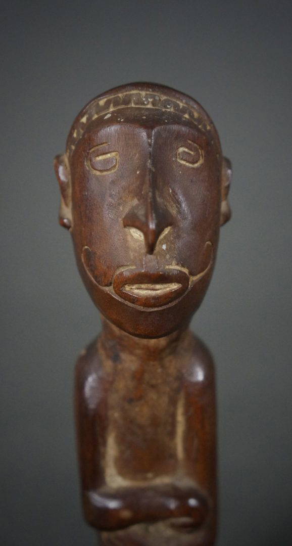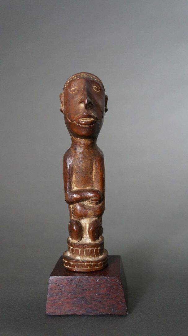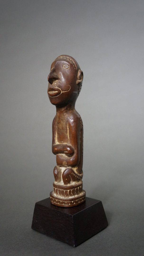 Ive had the privilege of handling several objects carved by Mutuaga and this one is by far the most charming. It has an overall ‘softness’ that along with a warm patina and the traces of white lime, bring this little gem to life.