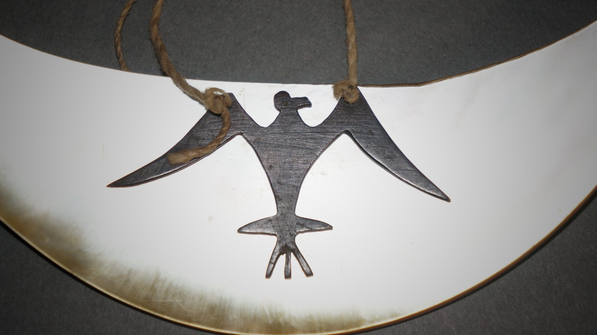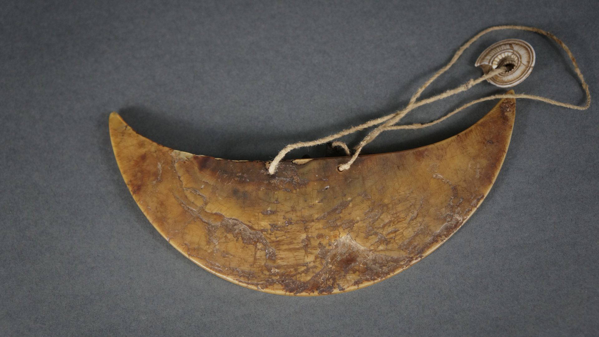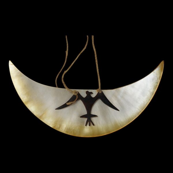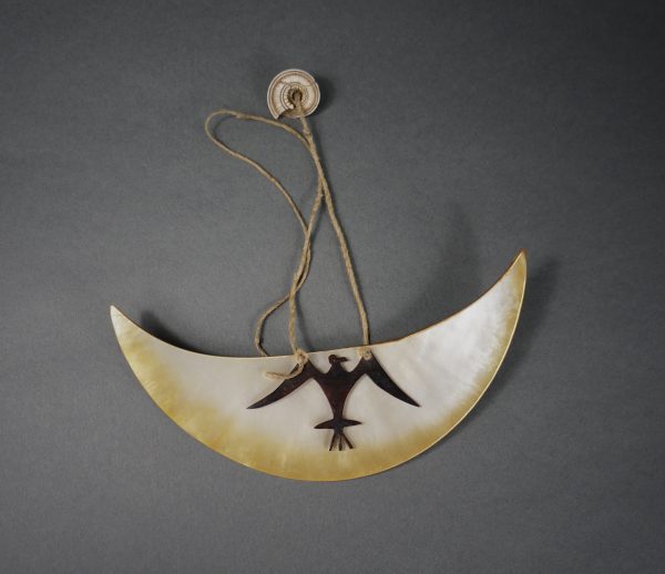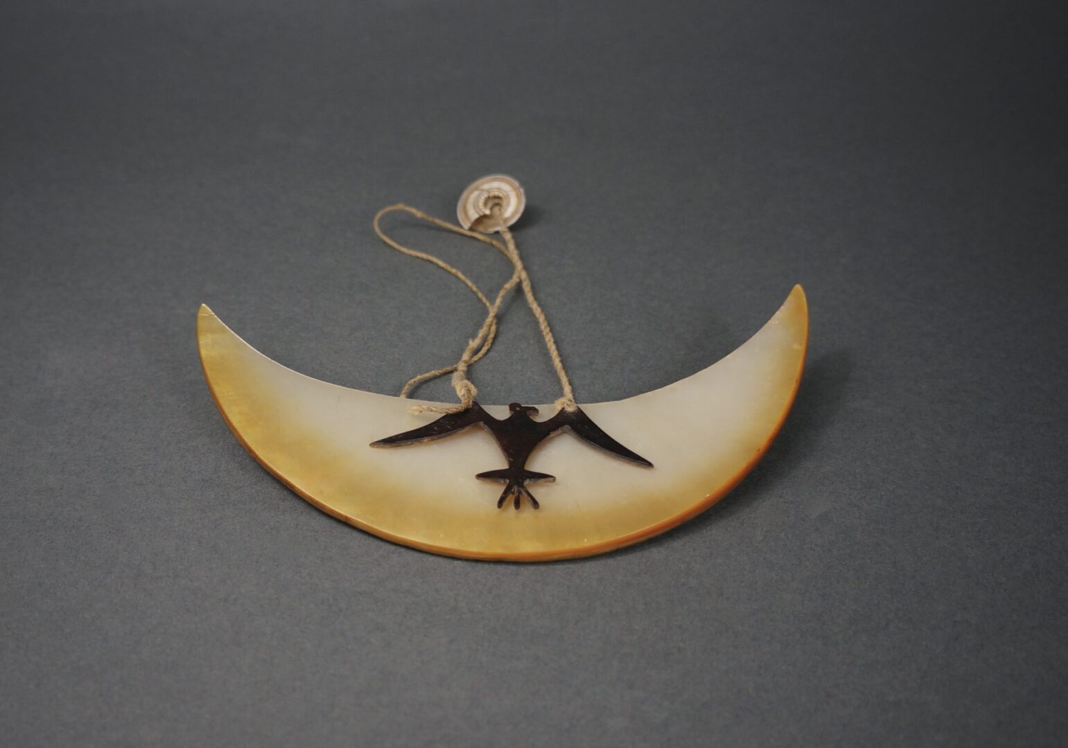 A crescent pendant (dafe) of shell worn on the chest by Solomon Islanders. Early 20th century.