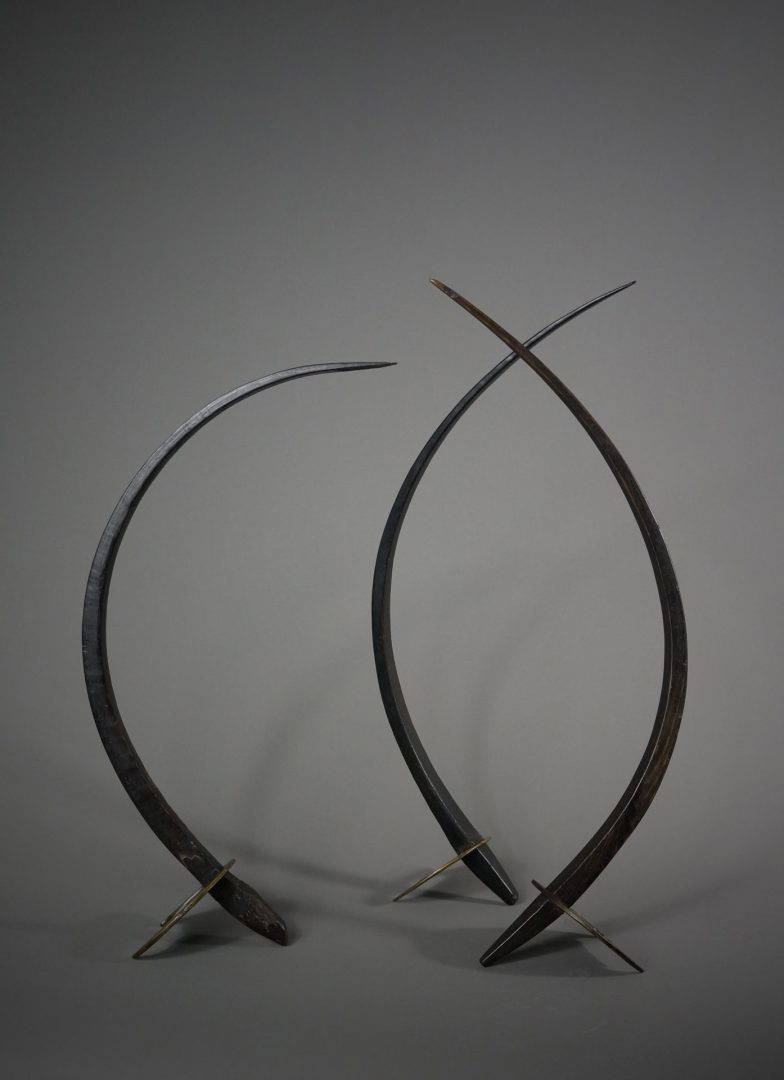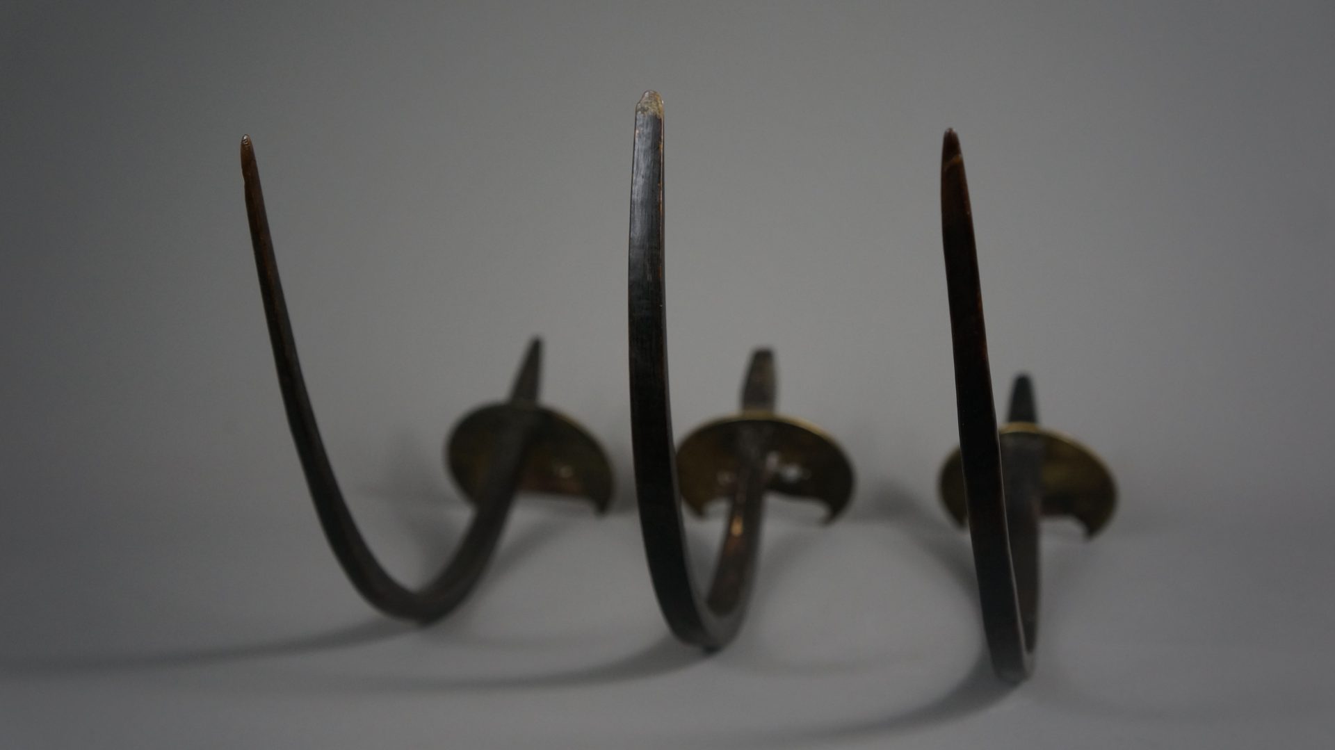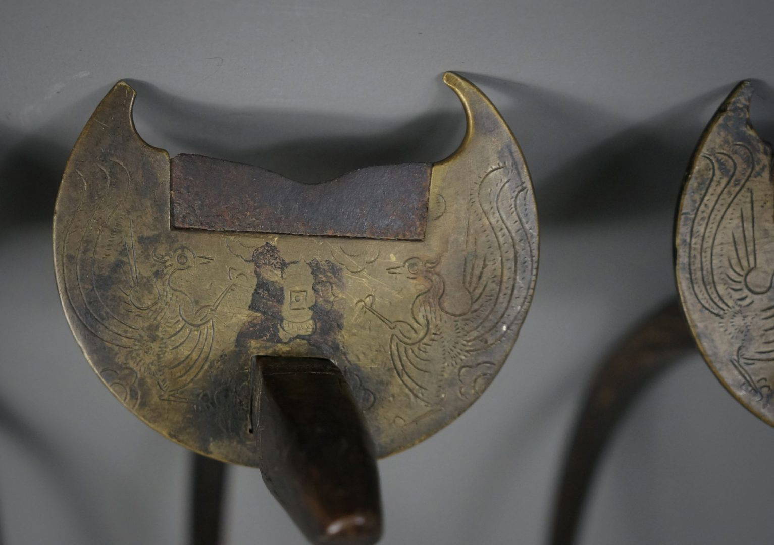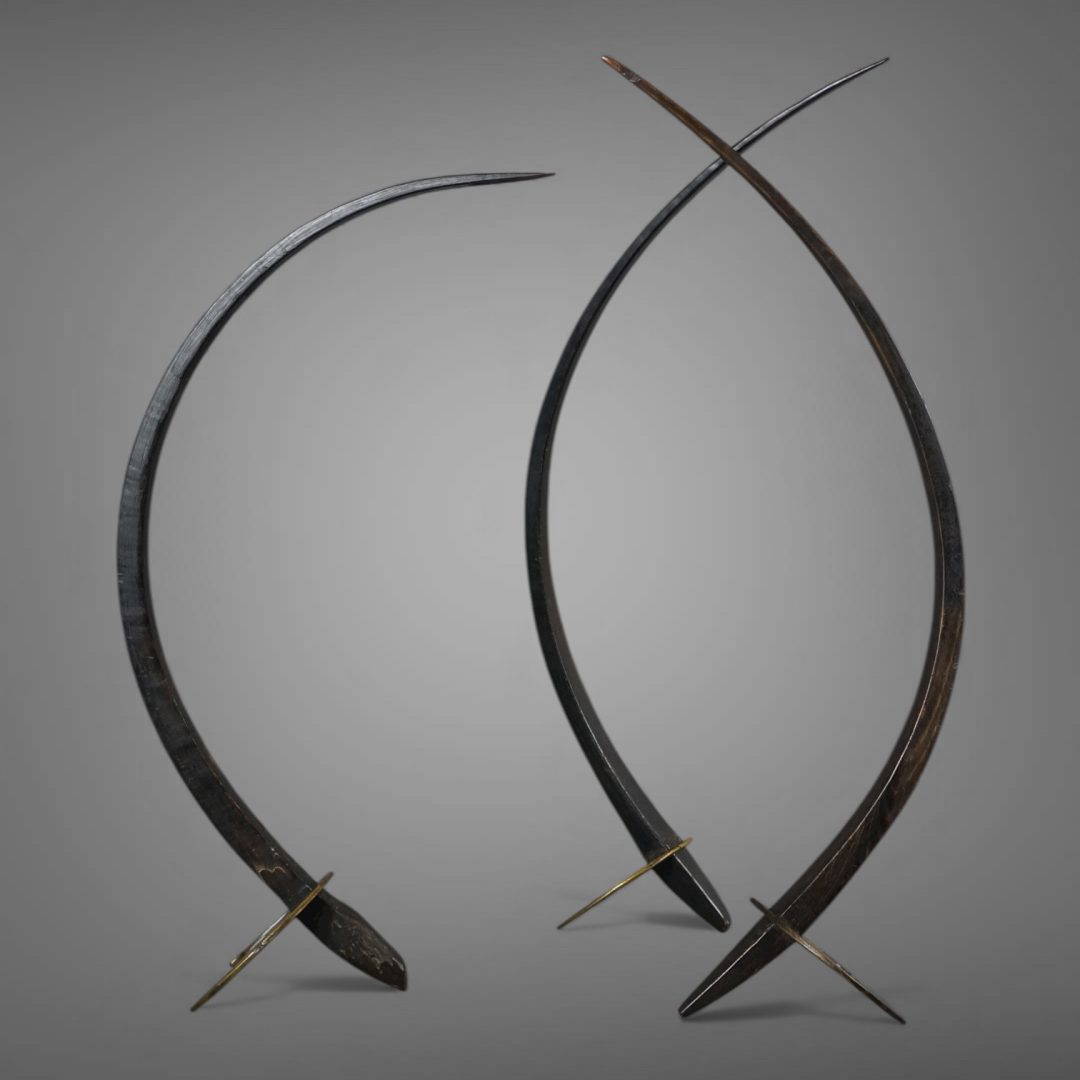 A group of rice cutters (Zhai he dao) c1900. Buffalo horn, brass and iron blades.