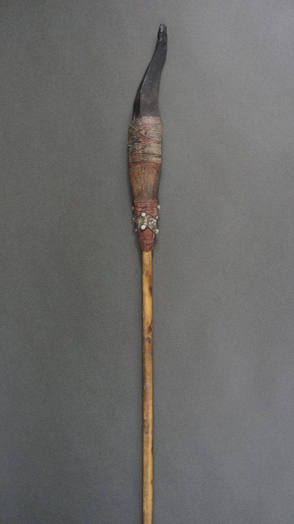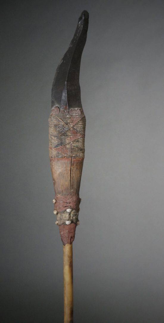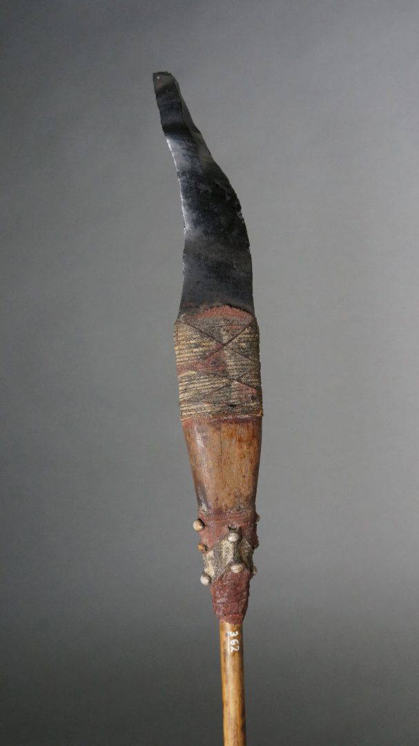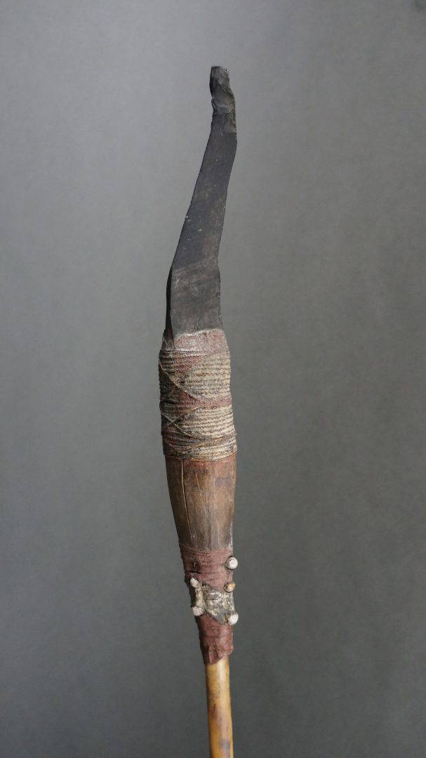 23. A 19th century spear with eccentric obsidian blade.
