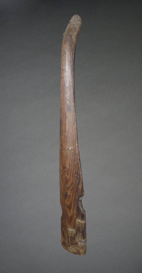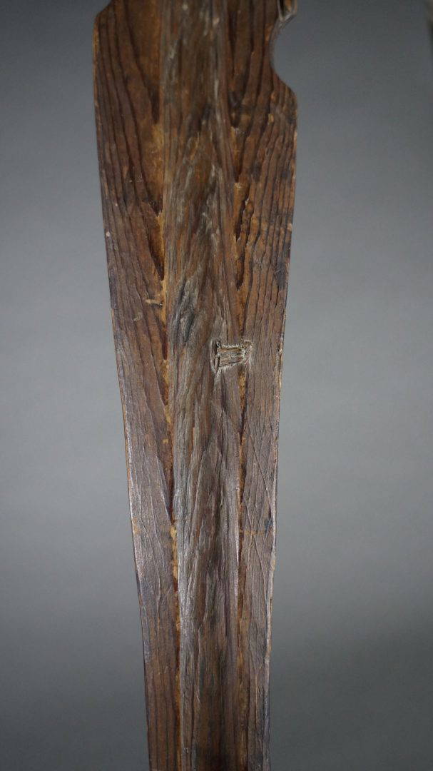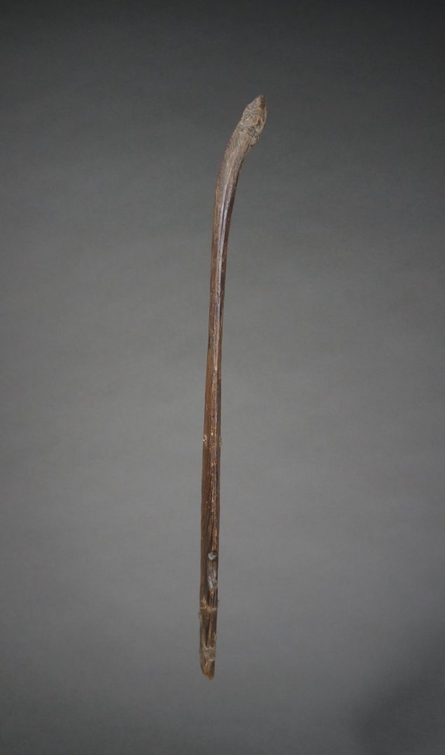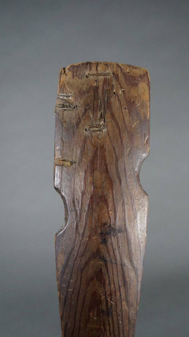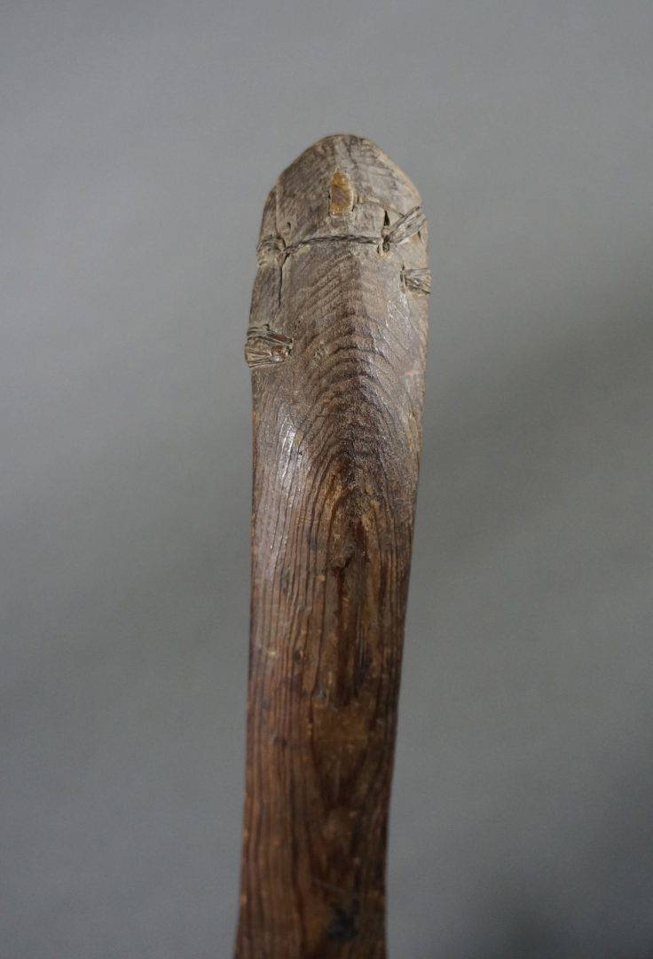 163. A very old and used atlatl or throwing stick. 19th century. Beautiful, intricate native repairs.