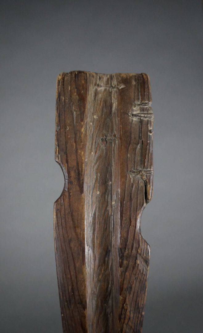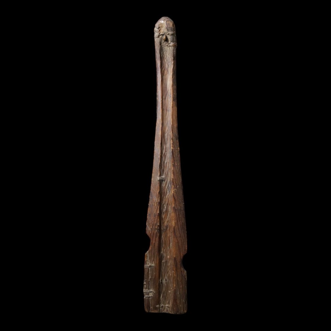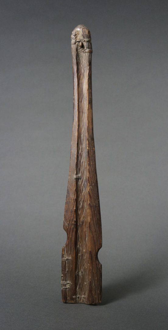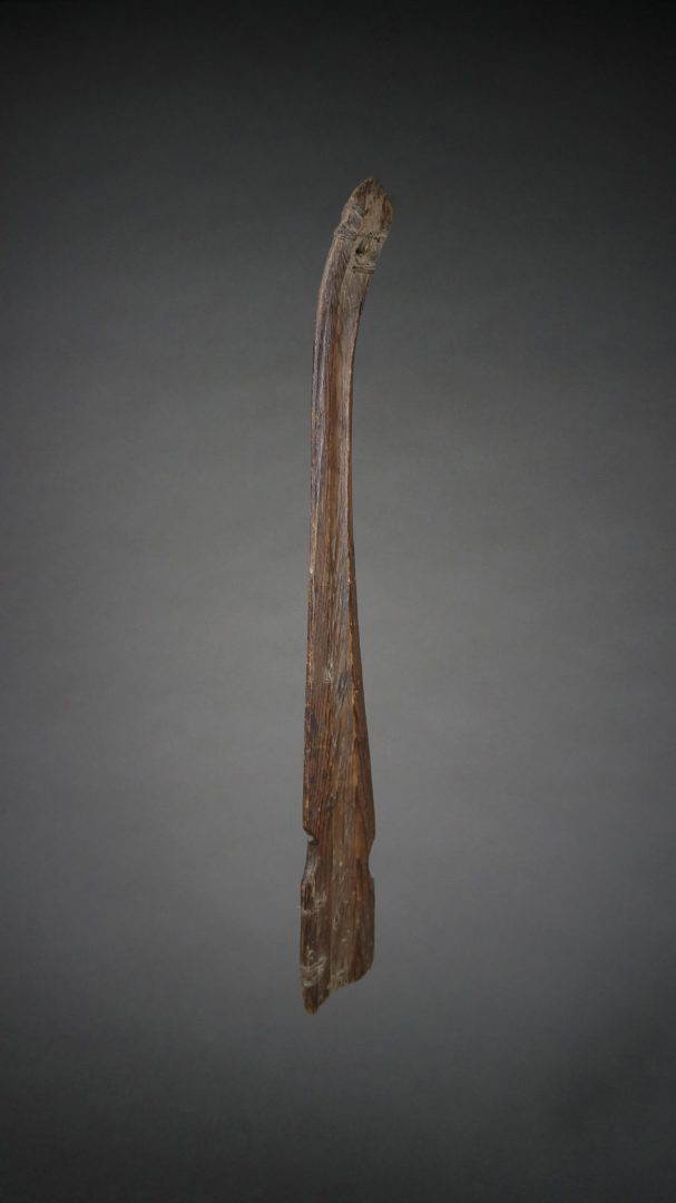 163. A very old and used atlatl or throwing stick. 19th century. Beautiful, intricate native repairs.
