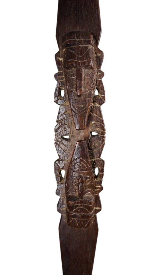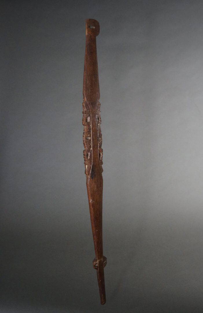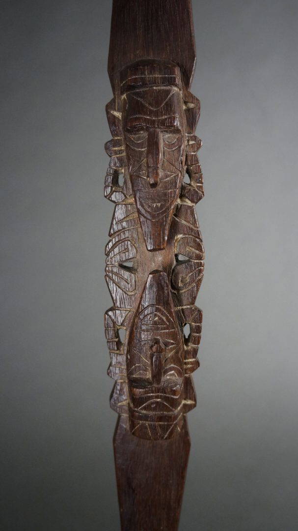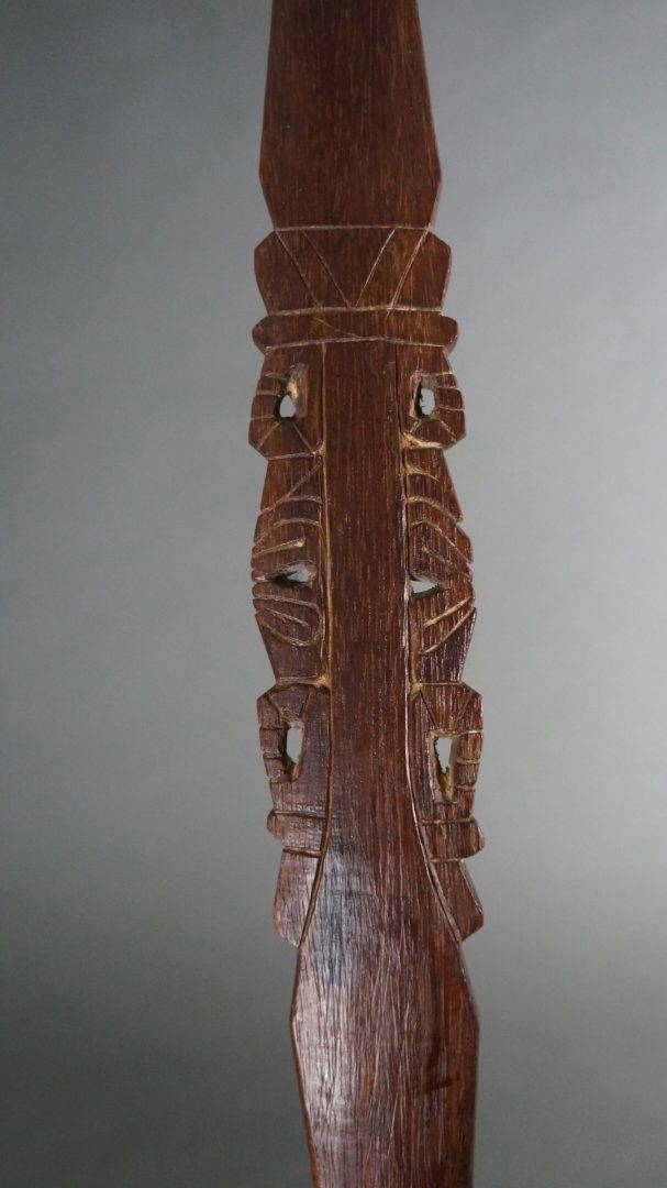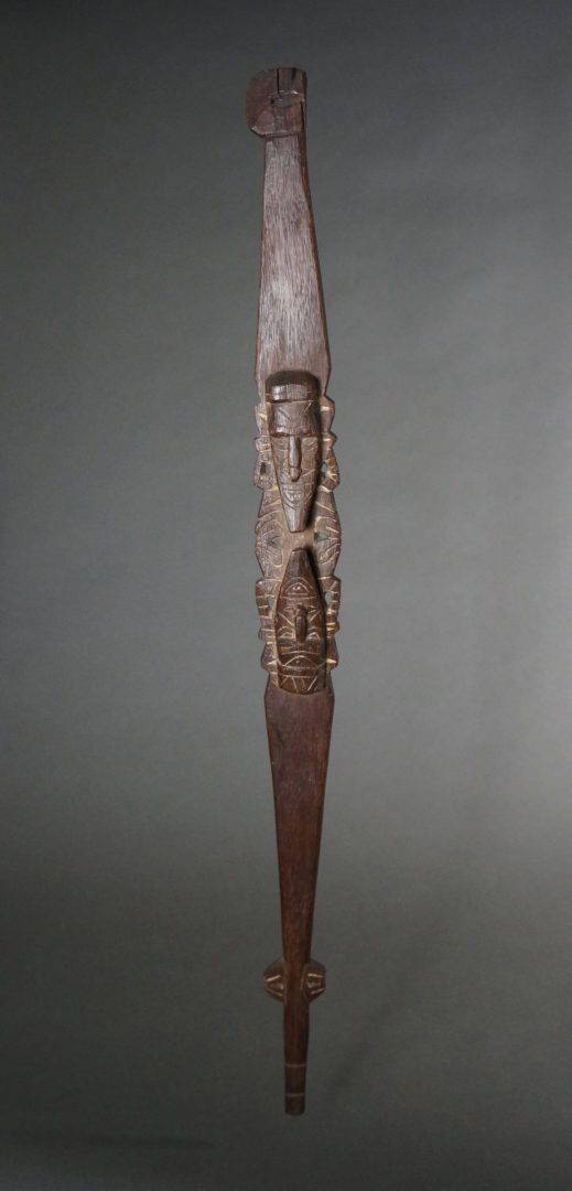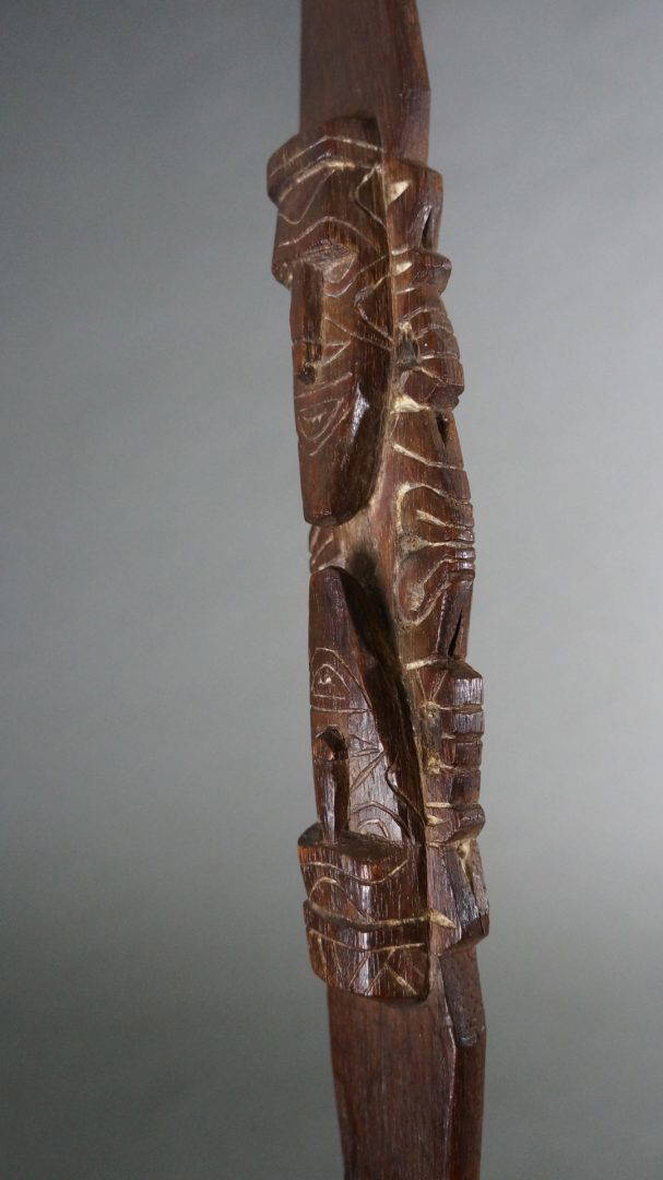 138. An interesting figurative element from the Tami Islands. It could be a handle for a ladle and would once have had a coconut bowl lashed to the one end?