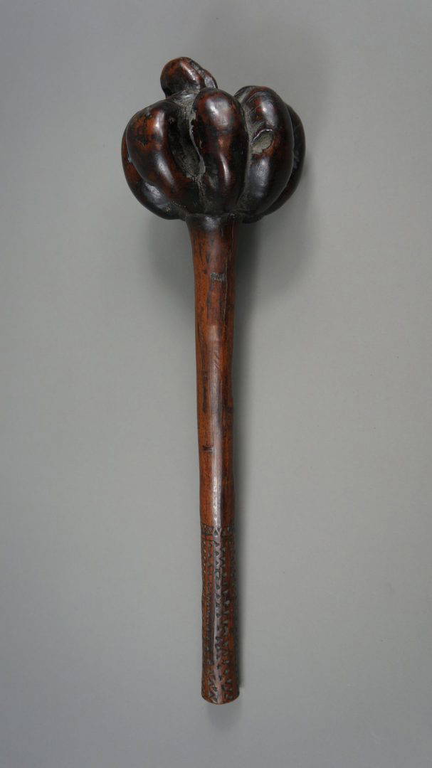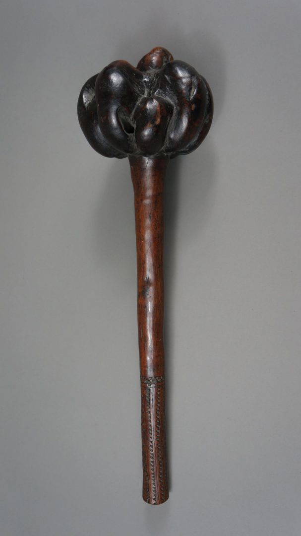 29. A good Fijian ‘Ula’ throwing club dating to the 19th century. It has a rich dark colour and a concave recess to the butt.