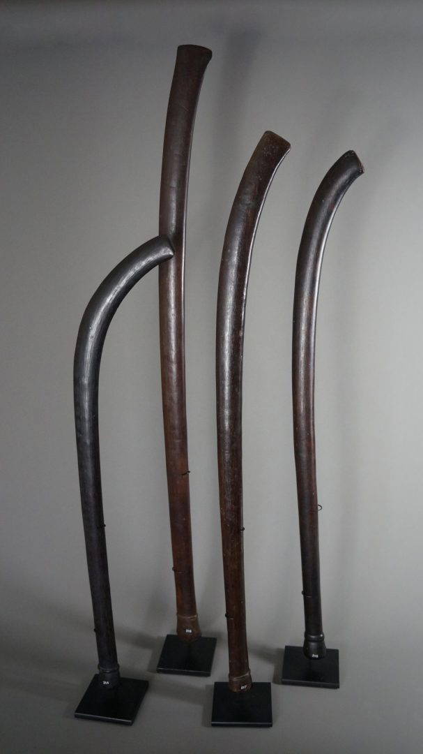 51. A collection of 19th century clubs all with very good surfaces. The one to the far right has some restoration to the handle. All professionally mounted.